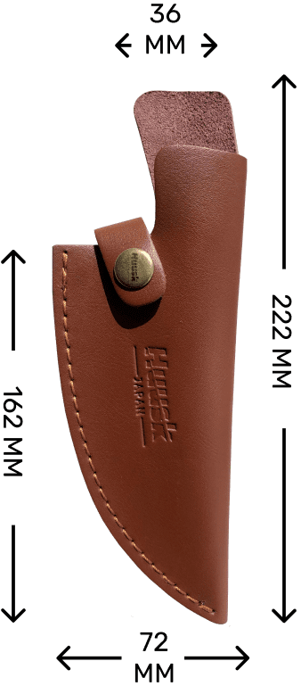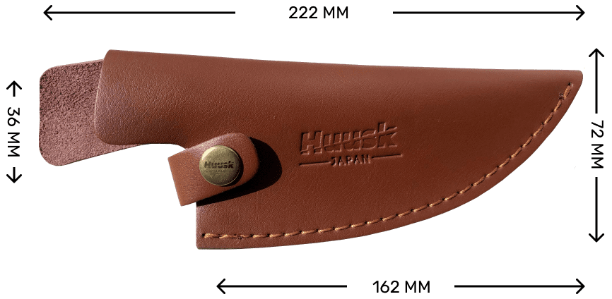 Terwijl we ernaar streefden om voor je Huusk een schede te maken die hem goed zou beschermen, wilden we ook iets maken waar je trots mee kunt pronken. Deze lederen schede werd ontworpen met stijl in gedachten, met zacht, soepel leder, en modieuze metalen accenten.