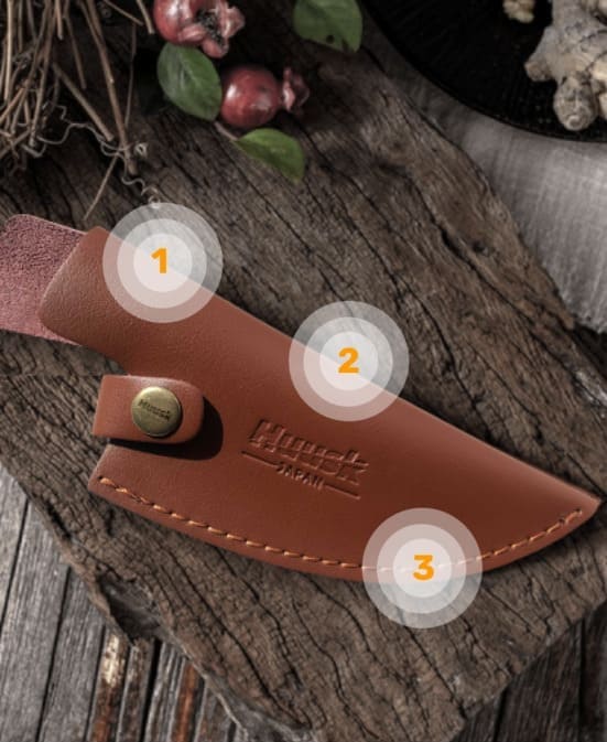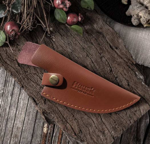 Waar je je Huusk messen ook mee naartoe neemt, je kunt er zeker van zijn dat ze beschermd zijn tegen de elementen en niet beschadigd worden als je ze in deze leren schede bewaart.
