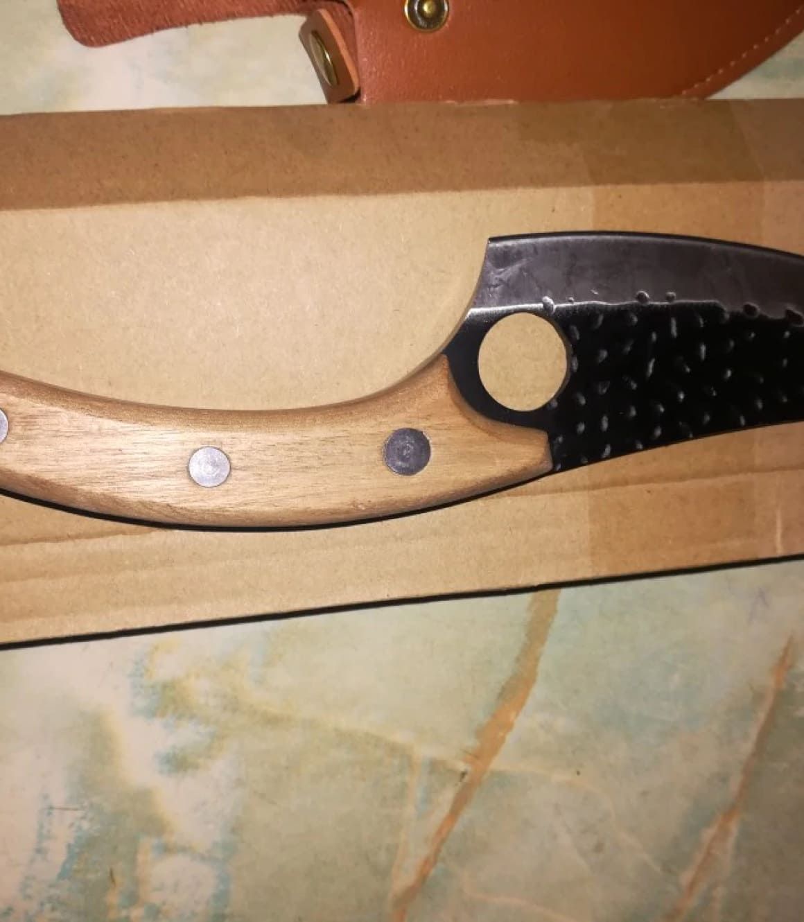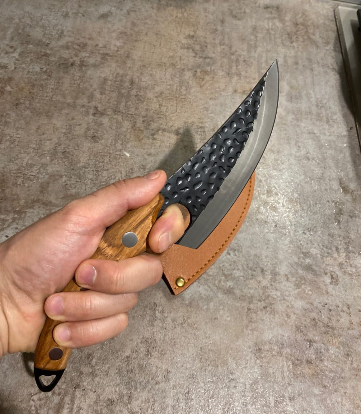 Ini ialah satu produk yang hebat, dengan reka bentuknya sangat ergonomik. Pisau yang sempurna, terasa kuat dan kukuh di tangan anda. Ia menggalakkan cengkaman yang lebih baik dan berada di tapak tangan anda dengan kukuh. Ianya cukup ringan untuk memotong sayur-sayuran dan cukup berat untuk memotong daging. Keberatannya sesuai untuk pelbagai fungsi. Mutu ketukangan dan reka bentuknya adalah sangat bagus dan ia sangat disyorkan.